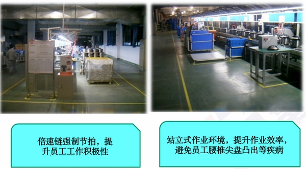 生產模式仿照精益短線,單人設備投入稍高正常生產線,單人效率較正常生產線高20%以上;