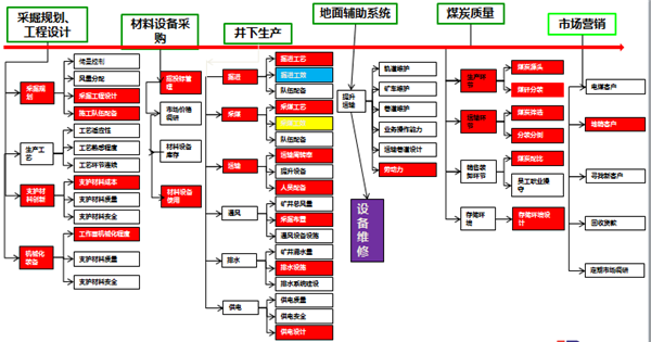 ?學習從煤礦生產環節找影響因素;繪制生產工序、環節流程圖,從各環節中尋找“七種浪費”,初步掌握價值鏈分析方法;