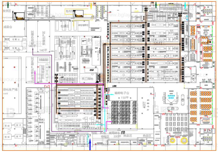 本規劃項目涉及對工廠進行整體規劃,規劃內容包含對車間精益布局規劃、水電氣設計與布局規劃、車間物流AGV配送規劃、智能化電子倉庫規劃等服務內容,實現工廠數據規范化、標準化,可滿足未來公司高速擴張的生產需求。