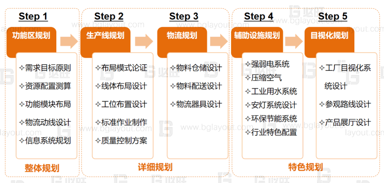 本規劃項目涉及對工廠進行整體精益布局規劃,規劃內容包含對工廠整體功能模塊規劃、車間布局規劃、生產線詳細設計、倉庫規劃、物流及輔助設施規劃、目視化設計等服務內容,全流程按照精益流線化方案進行規劃,滿足未來多元化及高產值發展的需求。