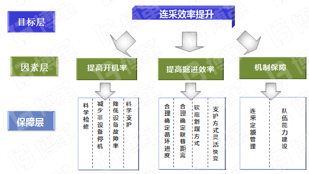 以O(shè)EE指標為引導,制定了關(guān)鍵路徑法,以提高開機率和性能開動率為兩條主線,提高設(shè)備綜合利用效率,從而提高綜采產(chǎn)能。